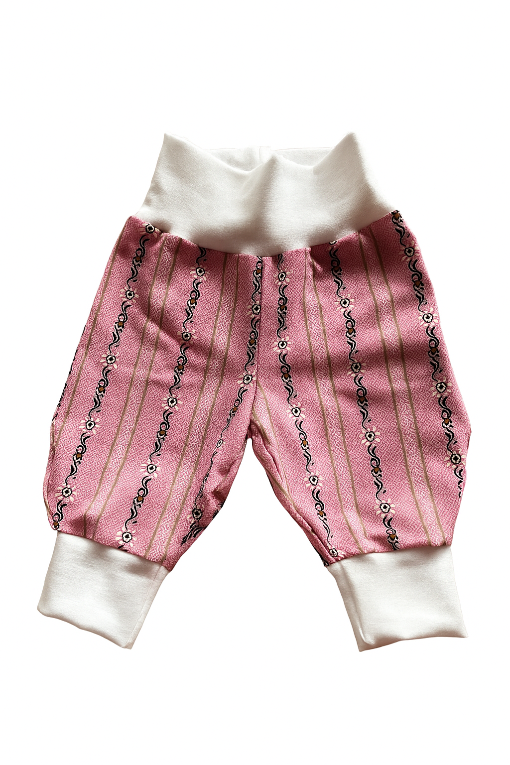 🌸 Handgemachte Baby Pumphose im pinken Edelweiss-Look – bequeme Mitwachshose für kleine Entdeckerinnen 🌸